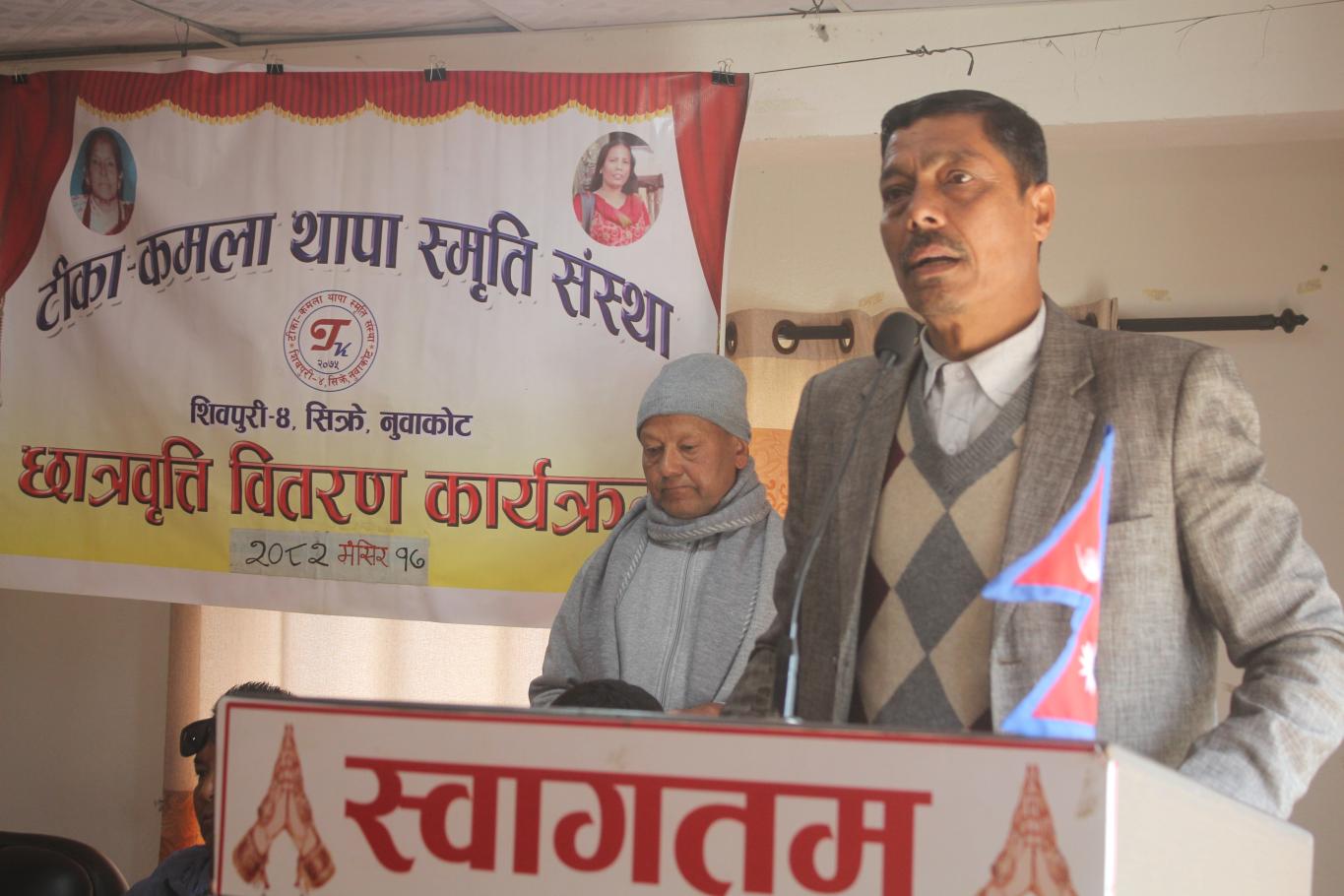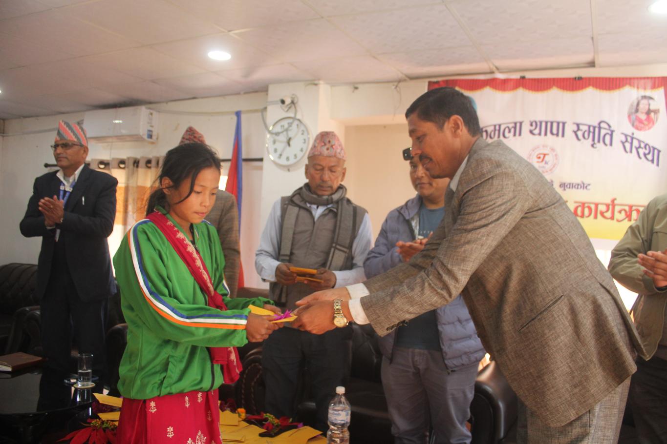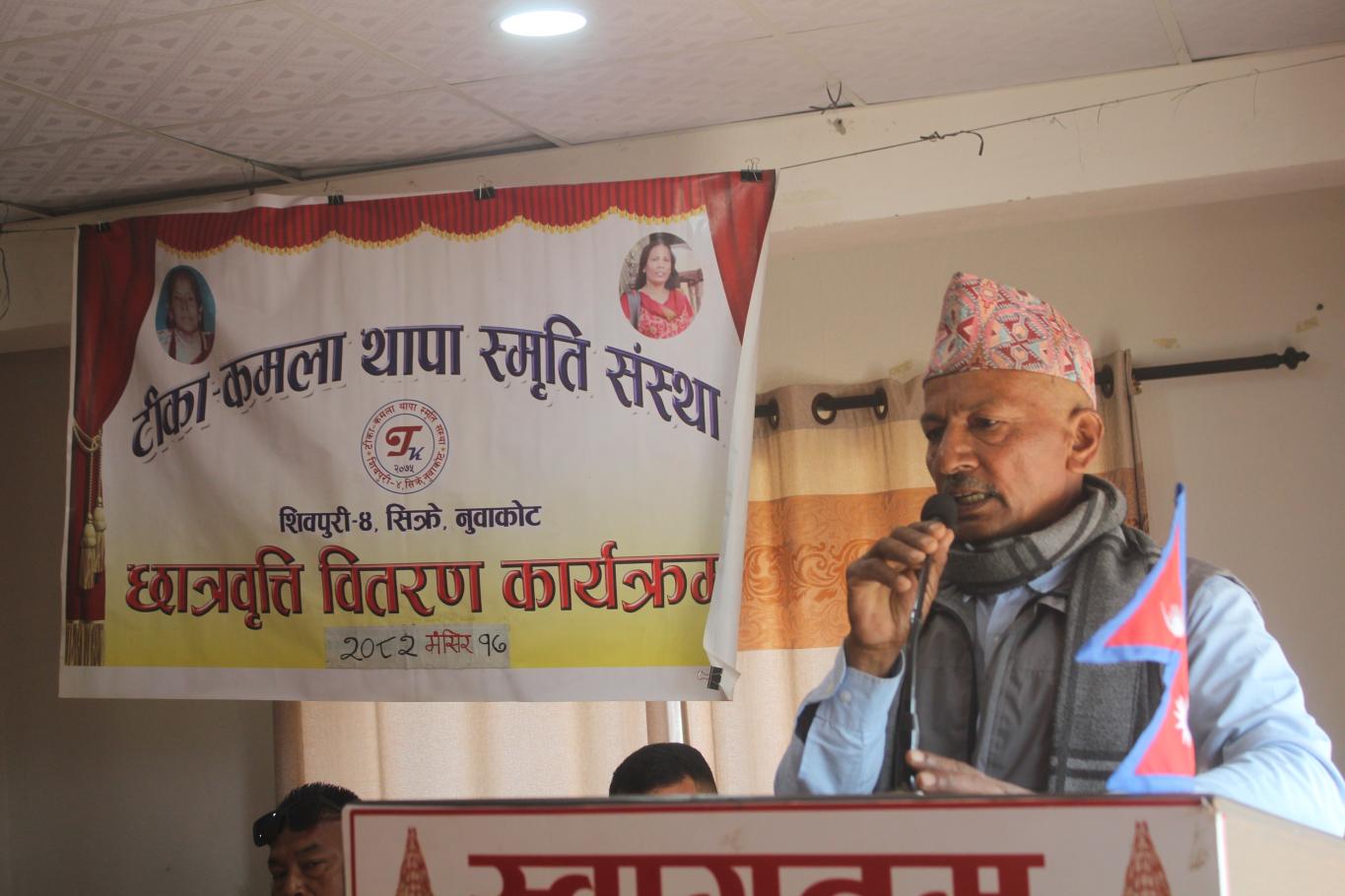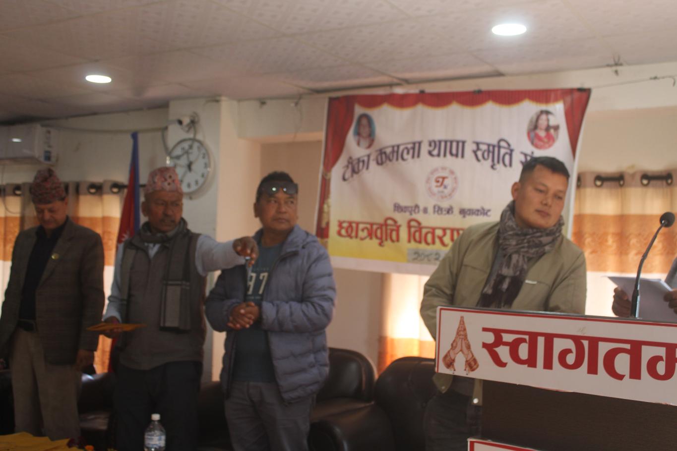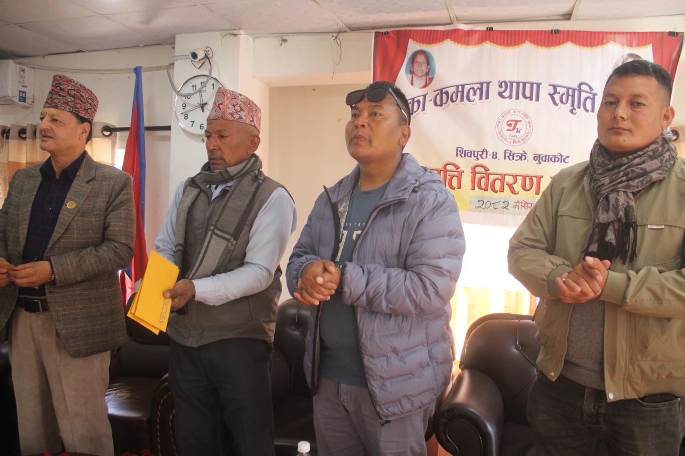 टिका कमला थापा स्मृति संस्था द्वारा शिवपुरी गापा भित्रका विद्यालयमा कक्षा ८,९,१०मा प्रथम र प्रति विद्यालय कक्षा ६-१२ का गरीब तथा जेहेन्दार १,१ जना गरि ६० जना अध्ययनरत विद्यार्थीलाई छात्रवृत्ति प्रदान