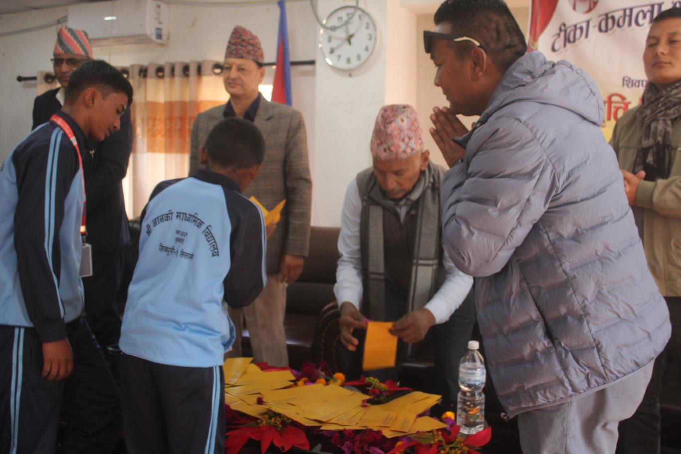 Home » टिका कमला थापा स्मृति संस्था द्वारा शिवपुरी गापा भित्रका विद्यालयमा कक्षा ८,९,१०मा प्रथम र प्रति विद्यालय कक्षा ६-१२ का गरीब तथा जेहेन्दार १,१ जना गरि ६० जना अध्ययनरत विद्यार्थीलाई छात्रवृत्ति प्रदान