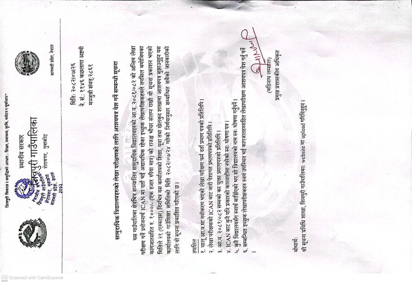 सामुदायिक विद्यालयहरुको लेखा परिक्षणको लागि आशयपत्र पेश गर्ने सम्बन्धी सूचना