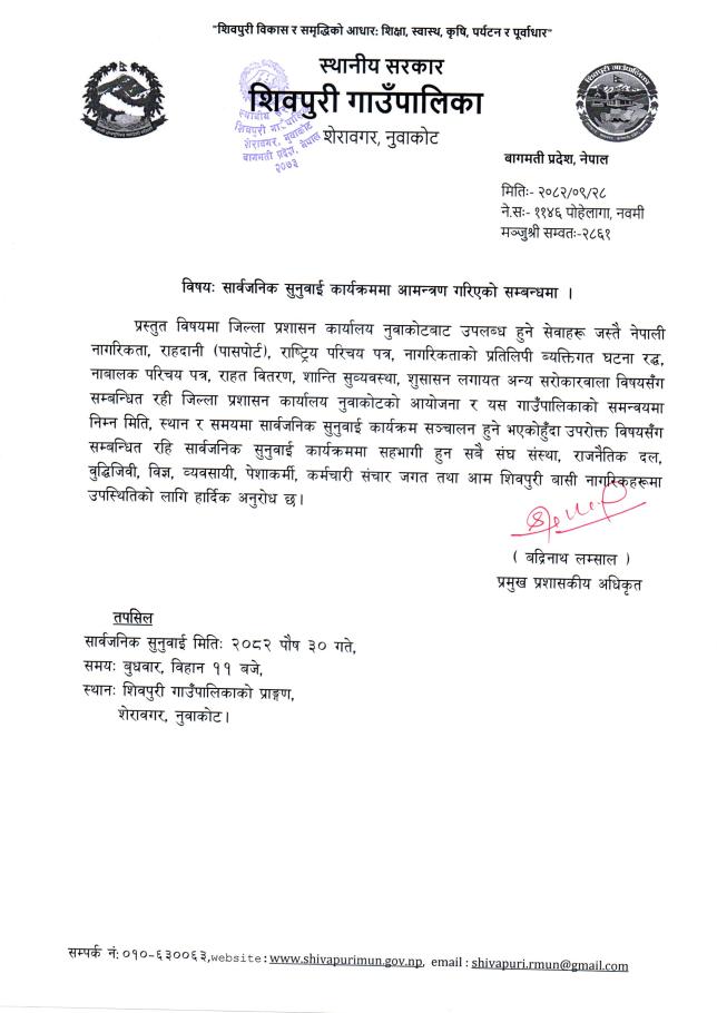 सार्वजनिक सुनुवाई कार्यक्रममा आमन्त्रण गरिएको सम्बन्धमा