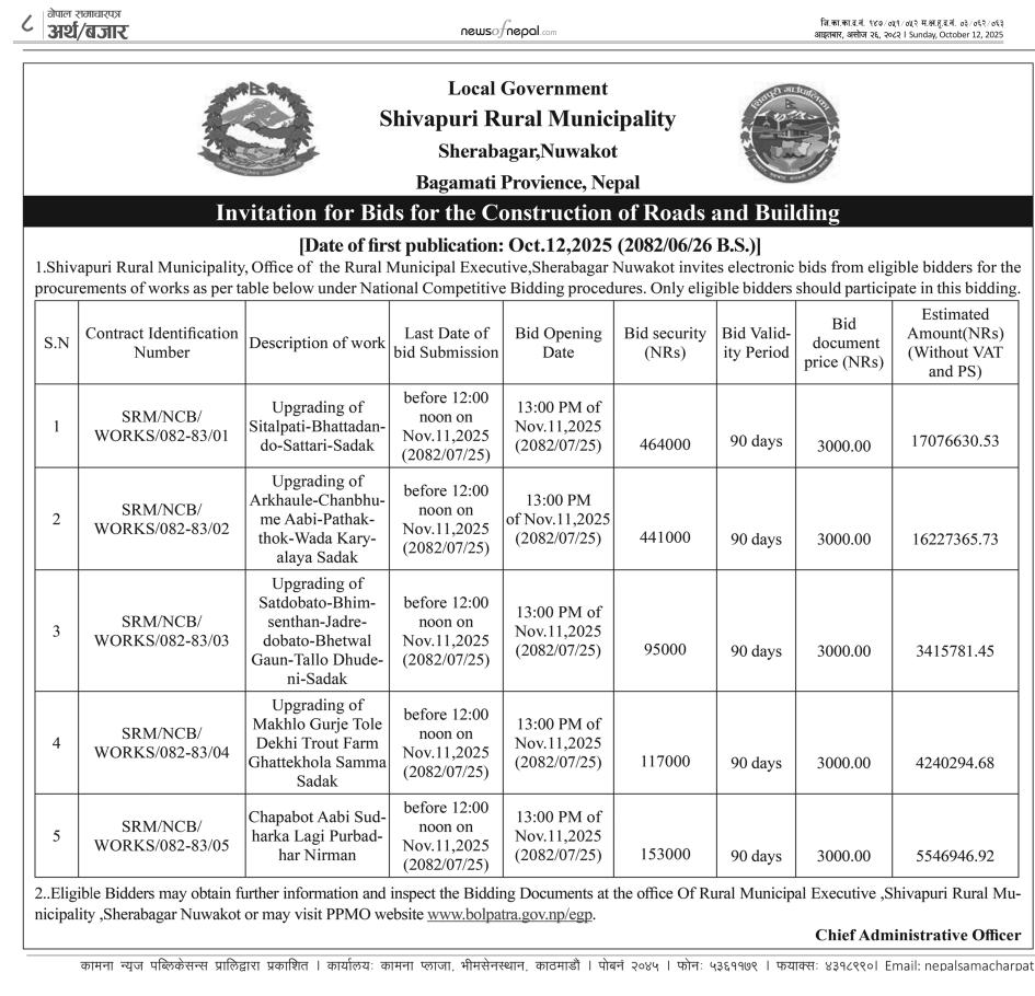 सार्वजनिक खरीद / बोलपत्र सूचना