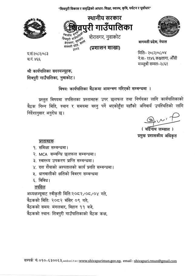 शिवपुरी गाउँपालिकाको विशेष गाउँसभा (दोस्रो बैठक)
