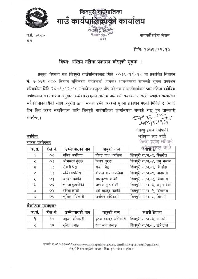 किसान सूचीकरण (गणक) अन्तिम नतिजा प्रकाशन गरिऐको सूचना