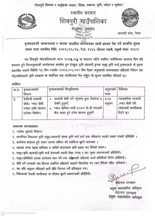 कृषकहरुको आवश्यकता र मागमा आधारित कार्यक्रमका लागि प्रस्ताव पेश गर्ने सम्बन्धि सूचना