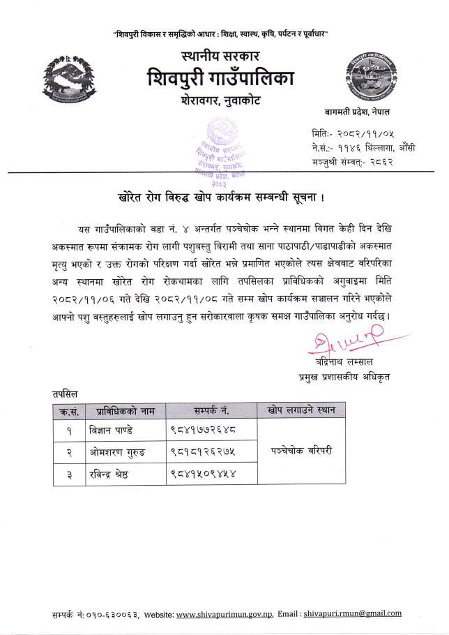 » खोरेत रोग विरुद्ध खोप कार्यक्रम सम्बन्धी सूचना