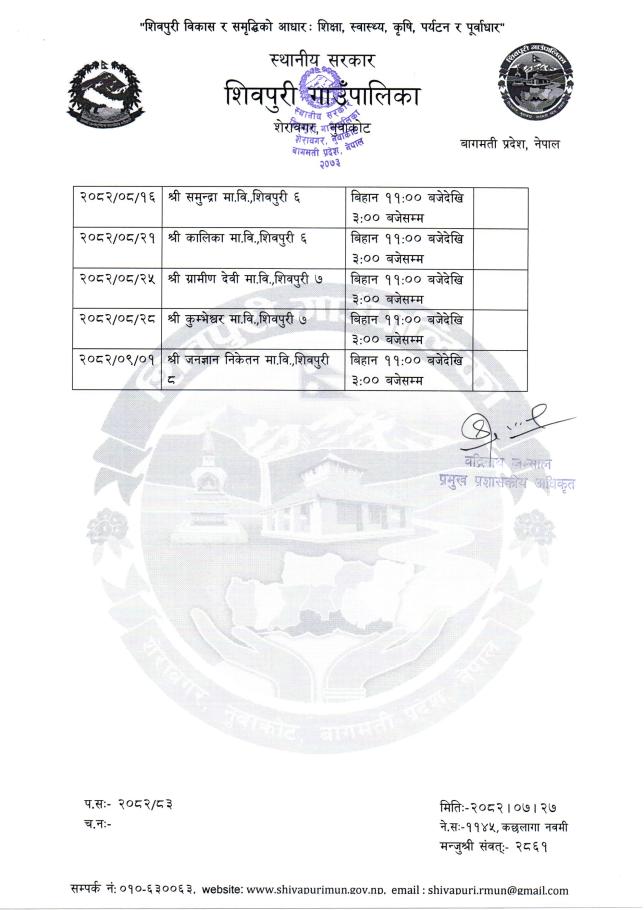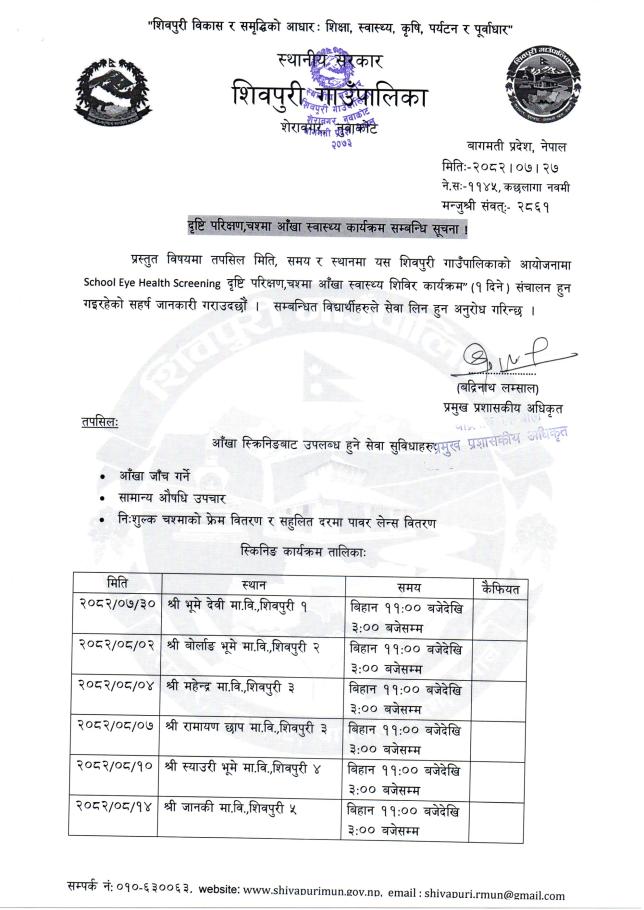 दृष्टि परिक्षण, चस्मा आँखा स्वास्थ्य कार्यक्रम सम्बन्धी सूचना