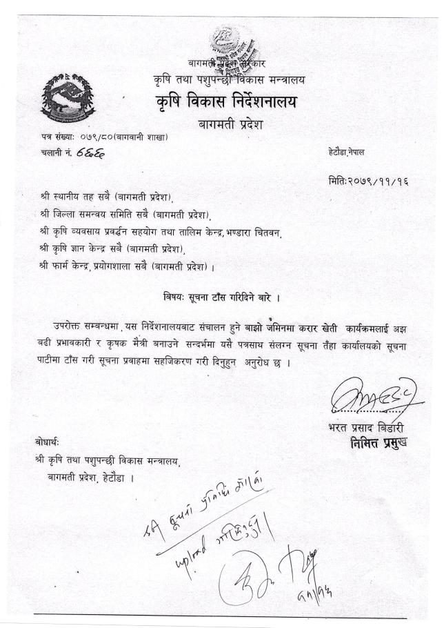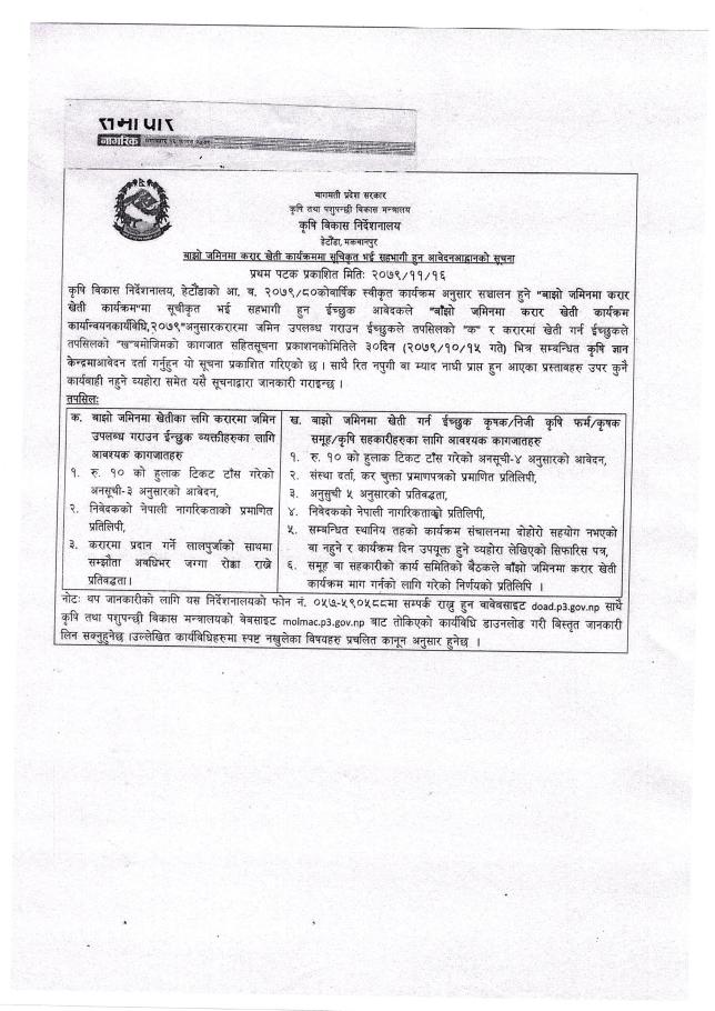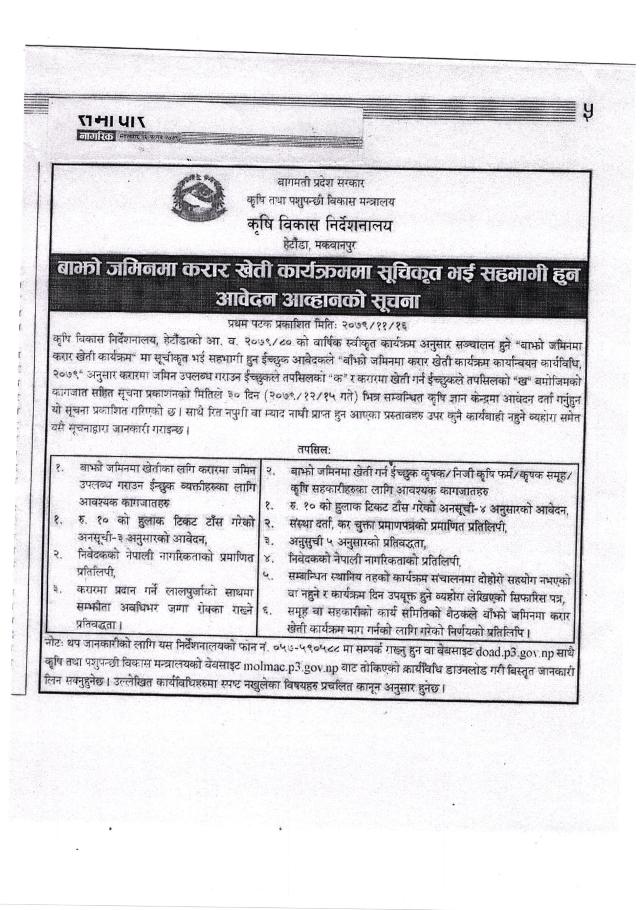 » बाझो जमिनमा करार खेती कार्यक्रममा सूचिकरण भई सहभागी हुन आवेदन आह्वानको सूचना