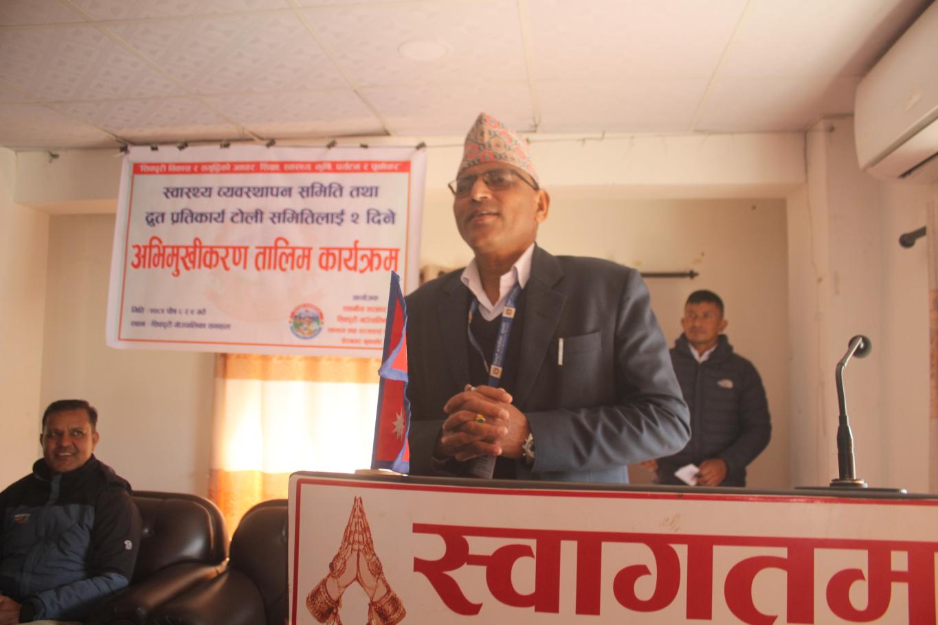 मिति २०८२-०९-०८ र ०९ गते सञ्चालित स्वास्थ्य व्यवस्थापन समिति तथा द्रुत प्रतिकार्य टोलि समितिलाई २ दिने अभिमुखिकरण तालिम कार्यक्रम