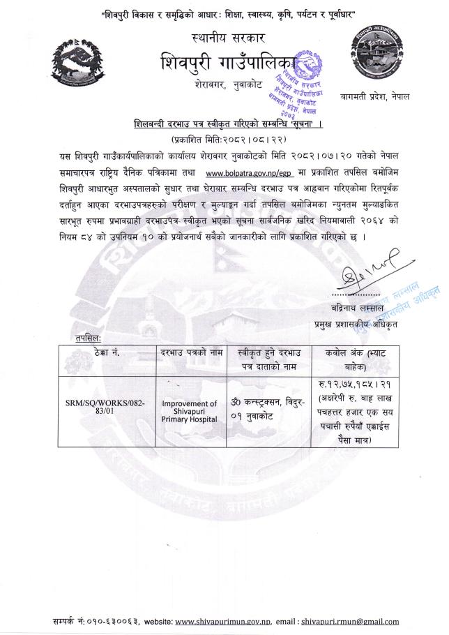 शिलबन्दी दरभाउपत्र स्वीकृत गरिएको सम्बन्धि सूचना