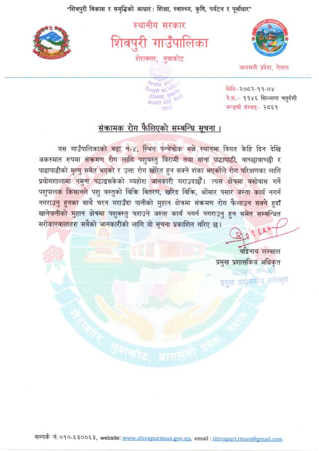 » संक्रामण रोग फैलिएको सम्बन्धि सूचना