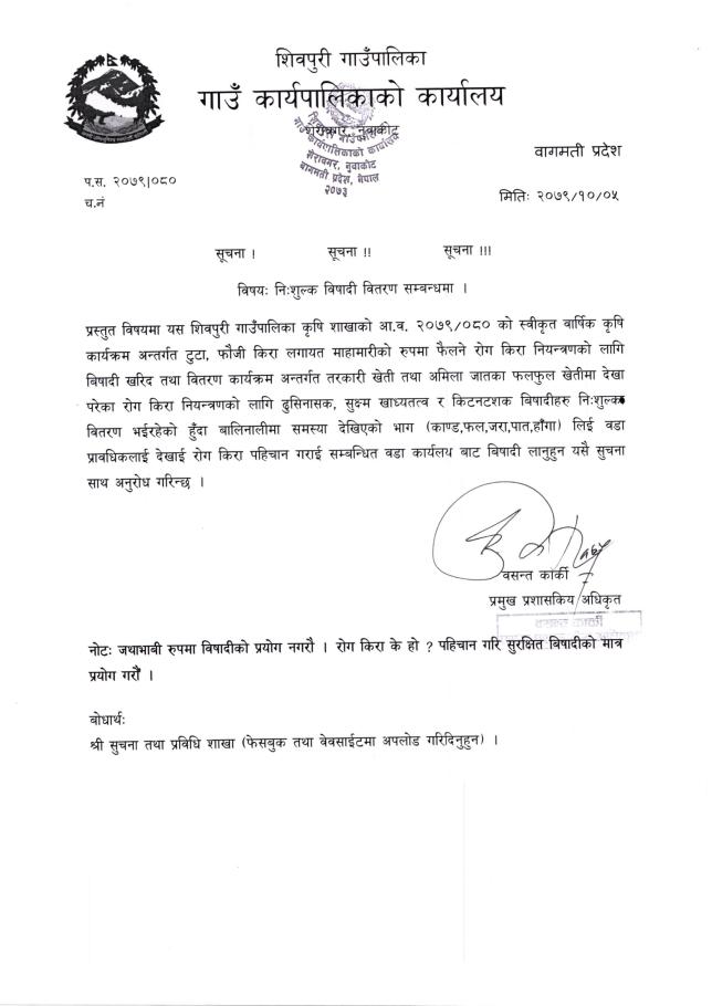 सूचना ! सूचना ! सूचना ! निःशुल्क विषादी वितरण सम्बन्धमा ।