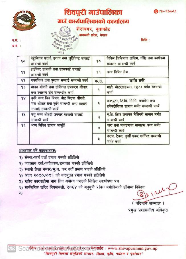 शिलबन्दी दरभाउपत्र स्वीकृत गरिएको सम्बन्धि सूचना