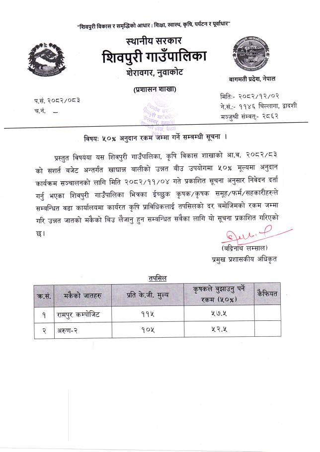 » ५०% अनुदान रकम जम्मा गर्ने सम्बन्धी सूचना
