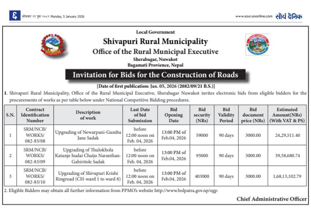 Invitation For The Bids Of Construction of Roads