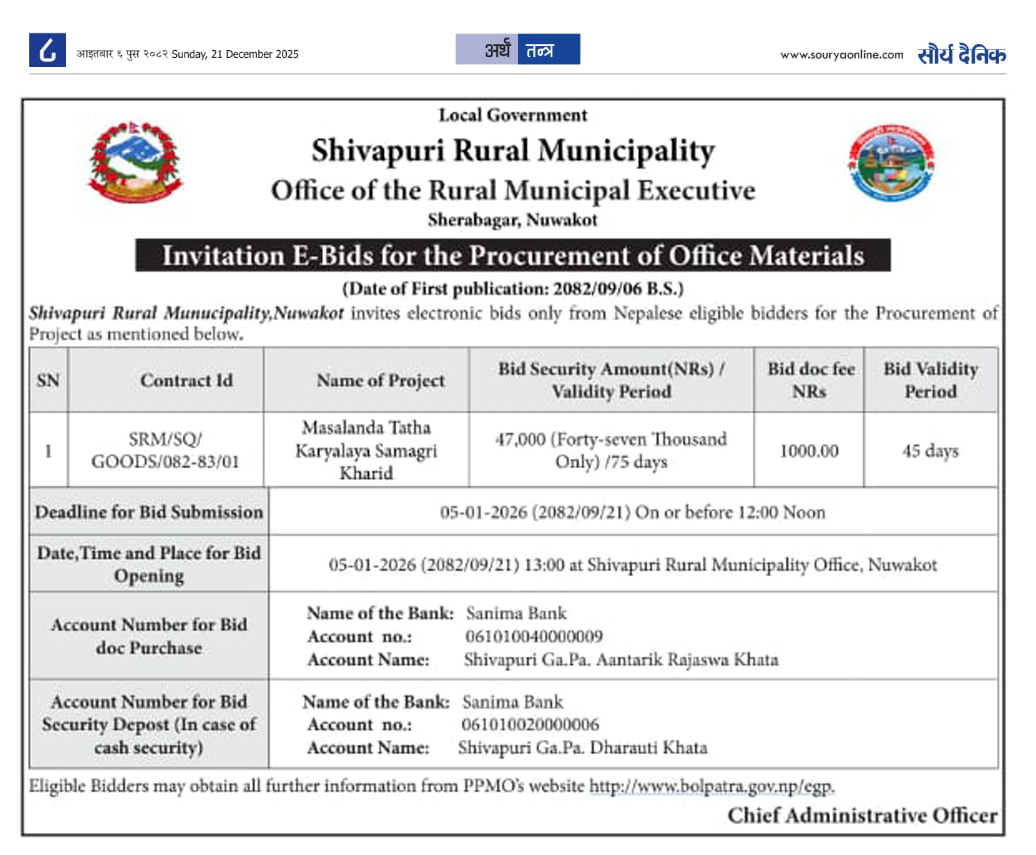 सार्वजनिक खरीद / बोलपत्र सूचना
