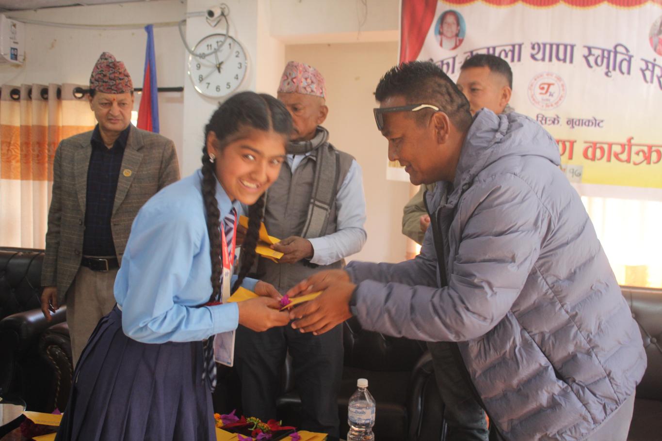 टिका कमला थापा स्मृति संस्था द्वारा शिवपुरी गापा भित्रका विद्यालयमा कक्षा ८,९,१०मा प्रथम र प्रति विद्यालय कक्षा ६-१२ का गरीब तथा जेहेन्दार १,१ जना गरि ६० जना अध्ययनरत विद्यार्थीलाई छात्रवृत्ति प्रदान